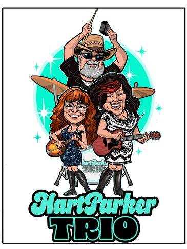 Head and shoulders caricatures with simple background. Taxes not included in price. (Image shown: 1 person color head and shoulders $30.00- with a custom logo design: total $50.00)